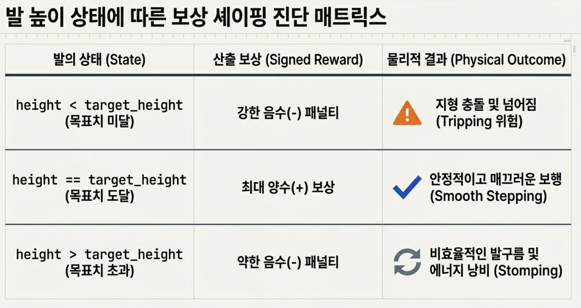 - 따라서 발을 드는 보상인 feet body height 보상을 설계하였습니다.
