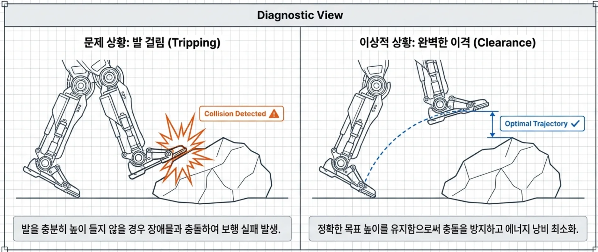 - 기대 효과: 로봇 입장에서는 이미 누군가가 밑에서 몸무게를 받쳐주는 느낌이 듭니다. 덕분에 인공지능은 무거운 몸을 띄우기 위해 억지 타겟을 내뱉지 않아도 되고, 오직 ‘원하는 방향으로 부드럽게 발을 뻗는 궤적만 얌전하게 출력하게 됩니다.