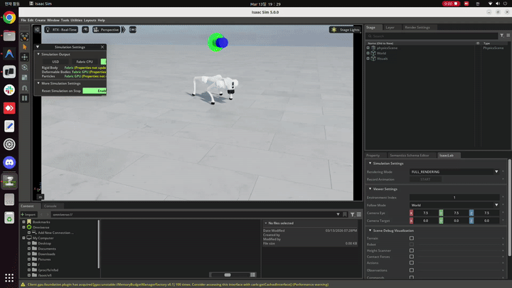 - 해결책: 물리 엔진(PhysX)이 매 순간 “현재 자세에서 중력을 버티려면 이 관절에 얼만큼의 기본 힘이 필요한지”를 계산해서 피드포워드($\tau_{ff}$)로 먼저 쏴줍니다.