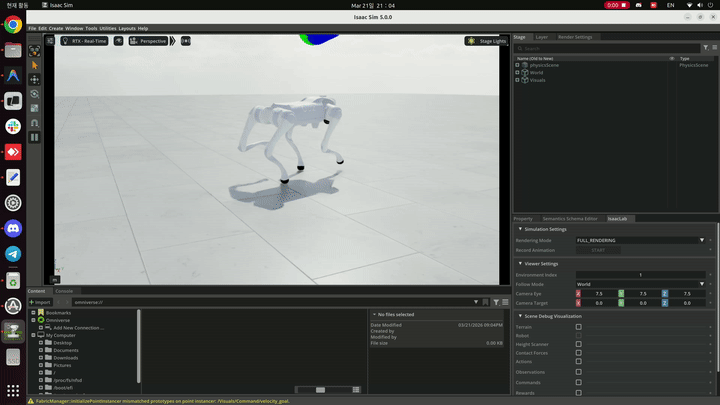 발을 들게하는 여러가지 reward를 추가하였더니 이제는 mujoco상에서는 go2가 걸을 수 있게 되었습니다.